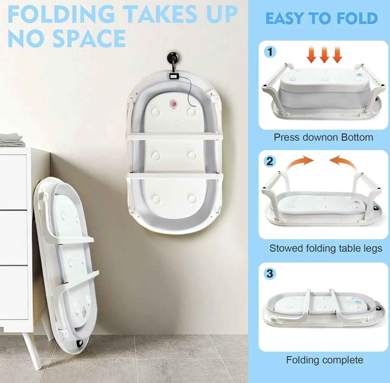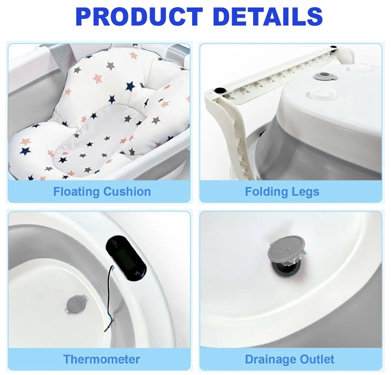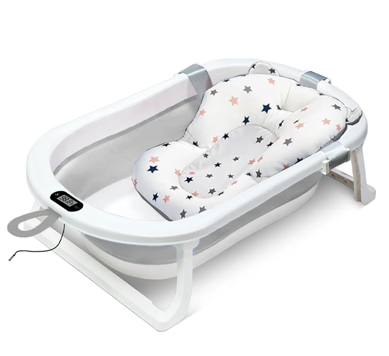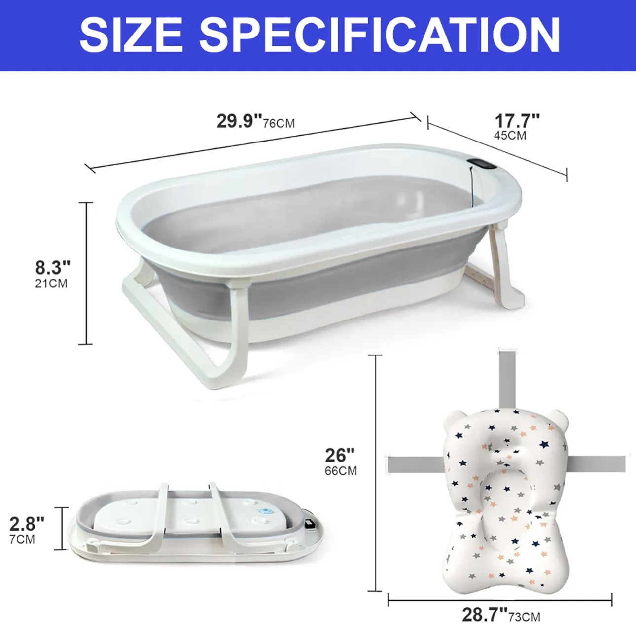 بامبل & بيرد – حوض استحمام قابل للطي مع الوسادة و ميزان الحرارة – رصاصي