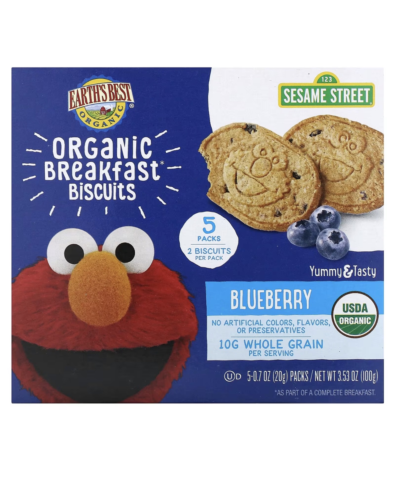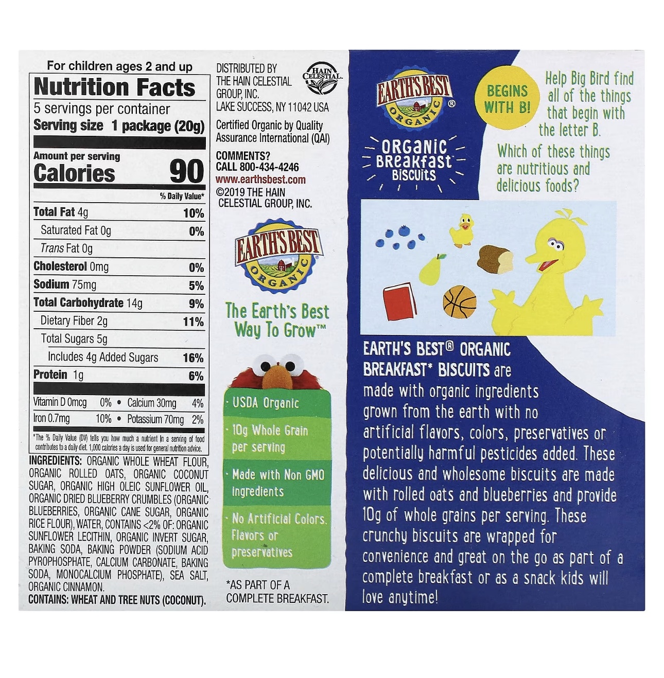 بسكوت افطار عضوي من عمر سنتين فمافوق بالتوت الازرق , 5 اكياس