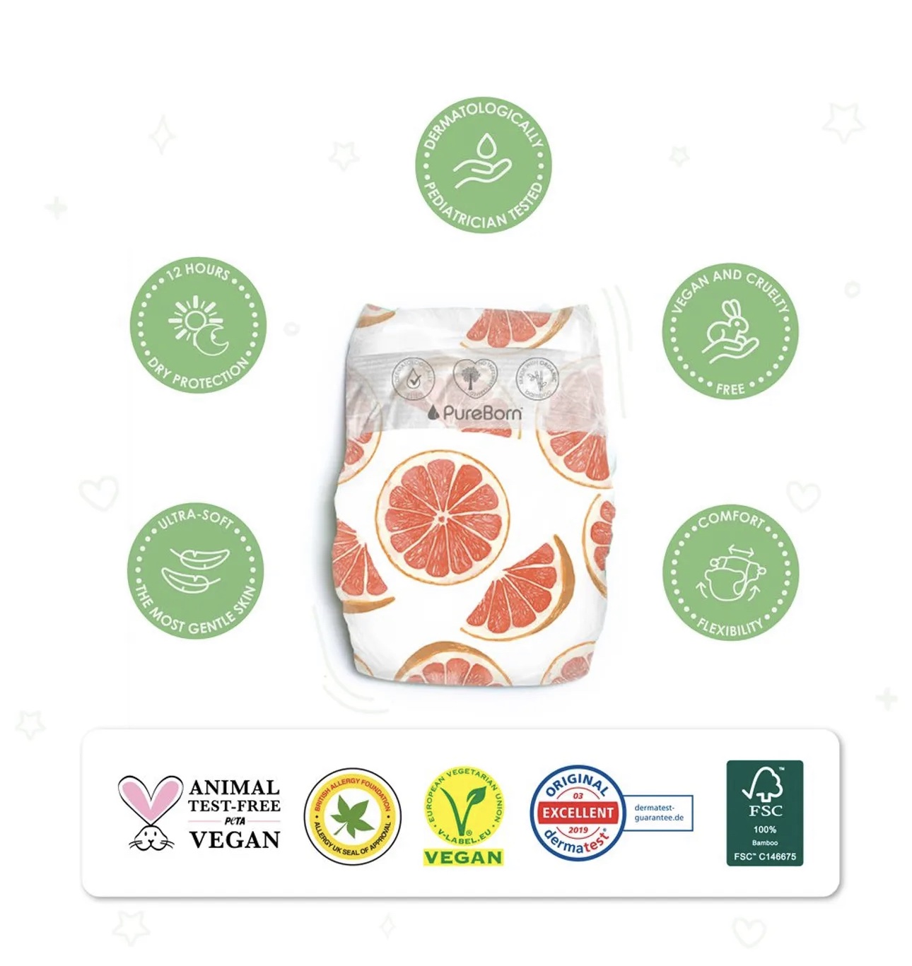 بيور بورن - حفاضات اطفال حجم 2 (3-6 KG) - 64 حفاضة