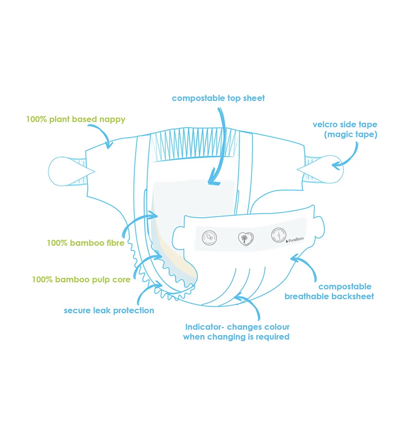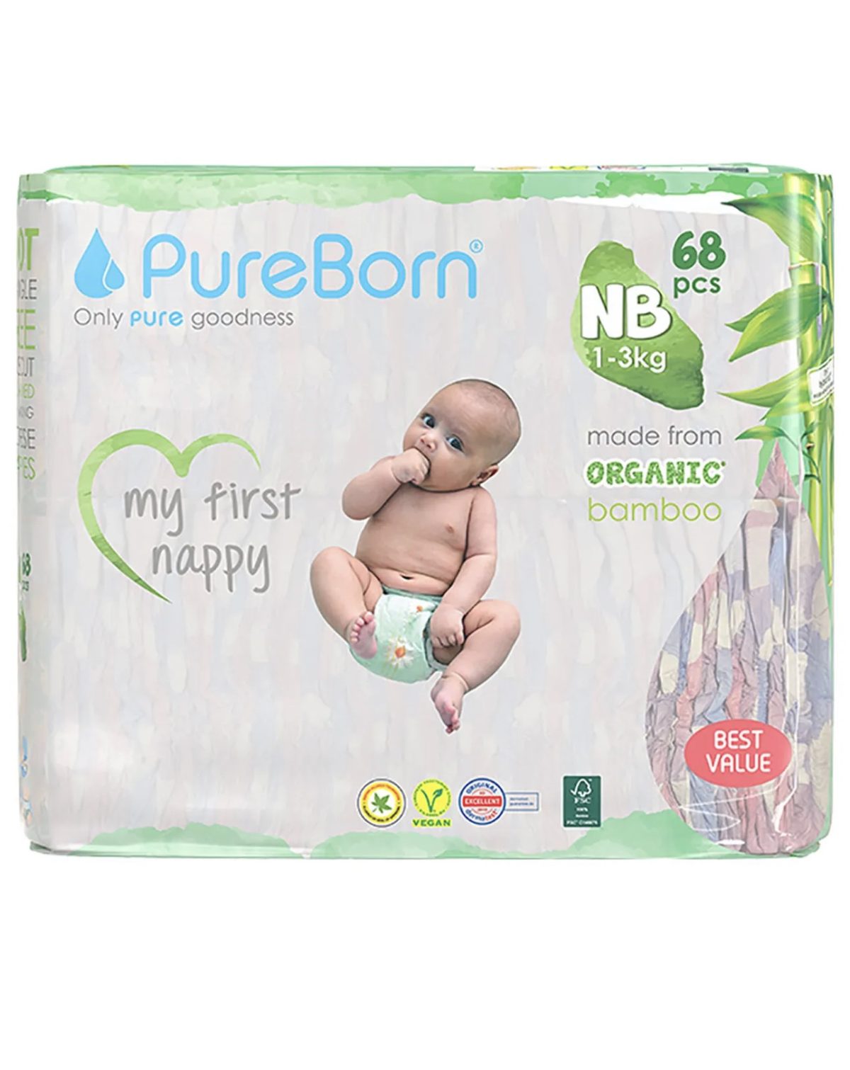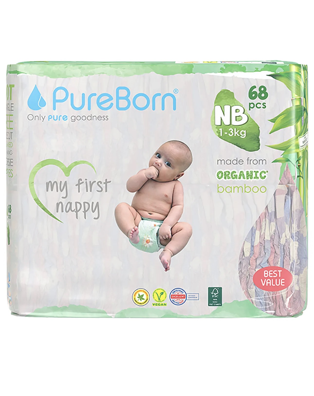 بيور بورن – حفاظات اطفال حديثي الولادة 1-3 كيلو قرام- 68 قطعة