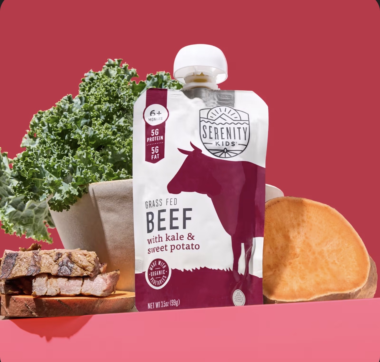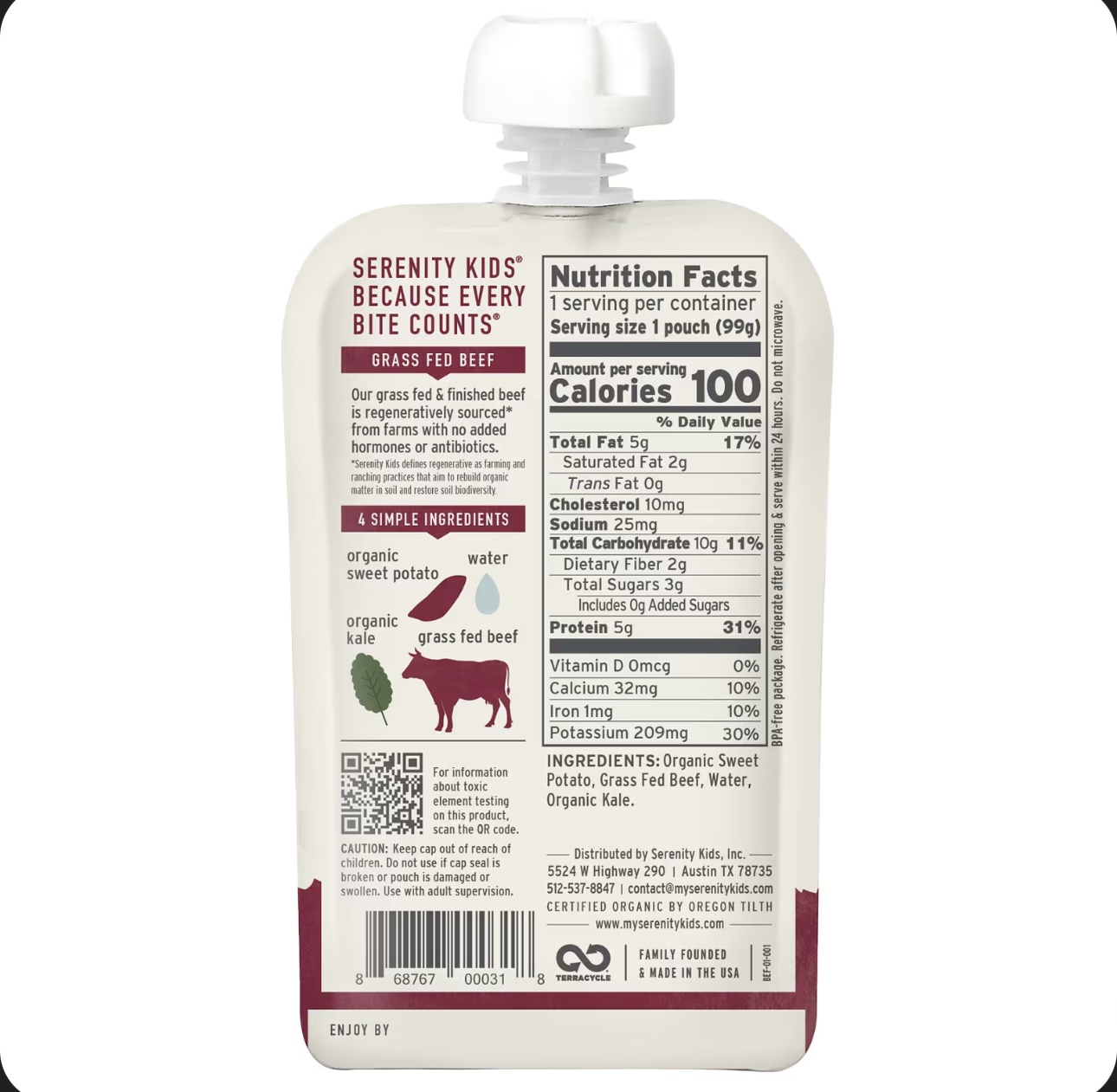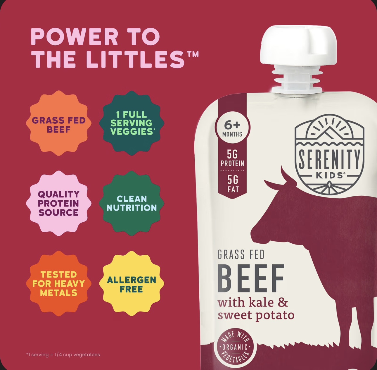 سيرينتي كيدز – لحم الابقار تتغذى على الاعشاب مع الكرنب الاجعد و البطاطا الحلوة , لاطفال بعمر 6 شهور و اكثر – 99 جرام