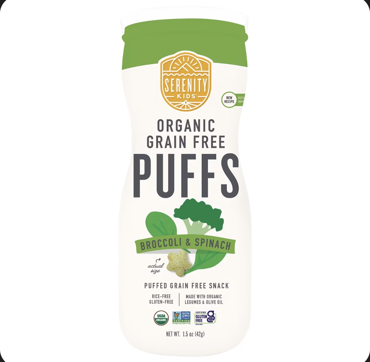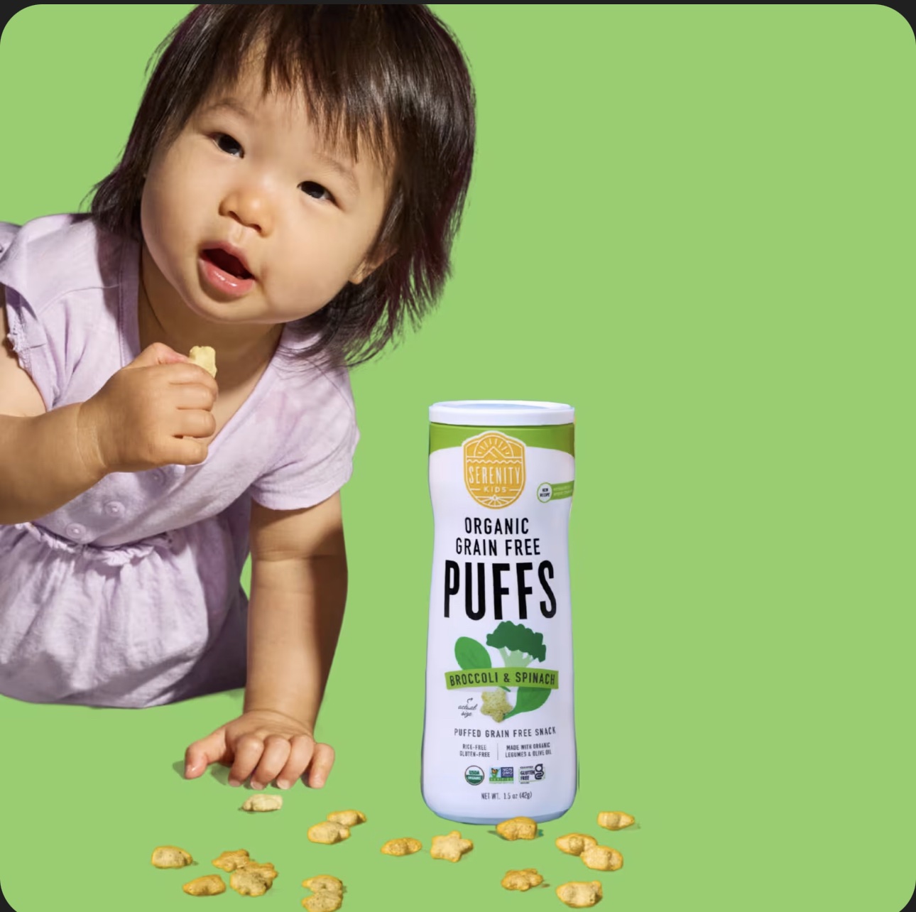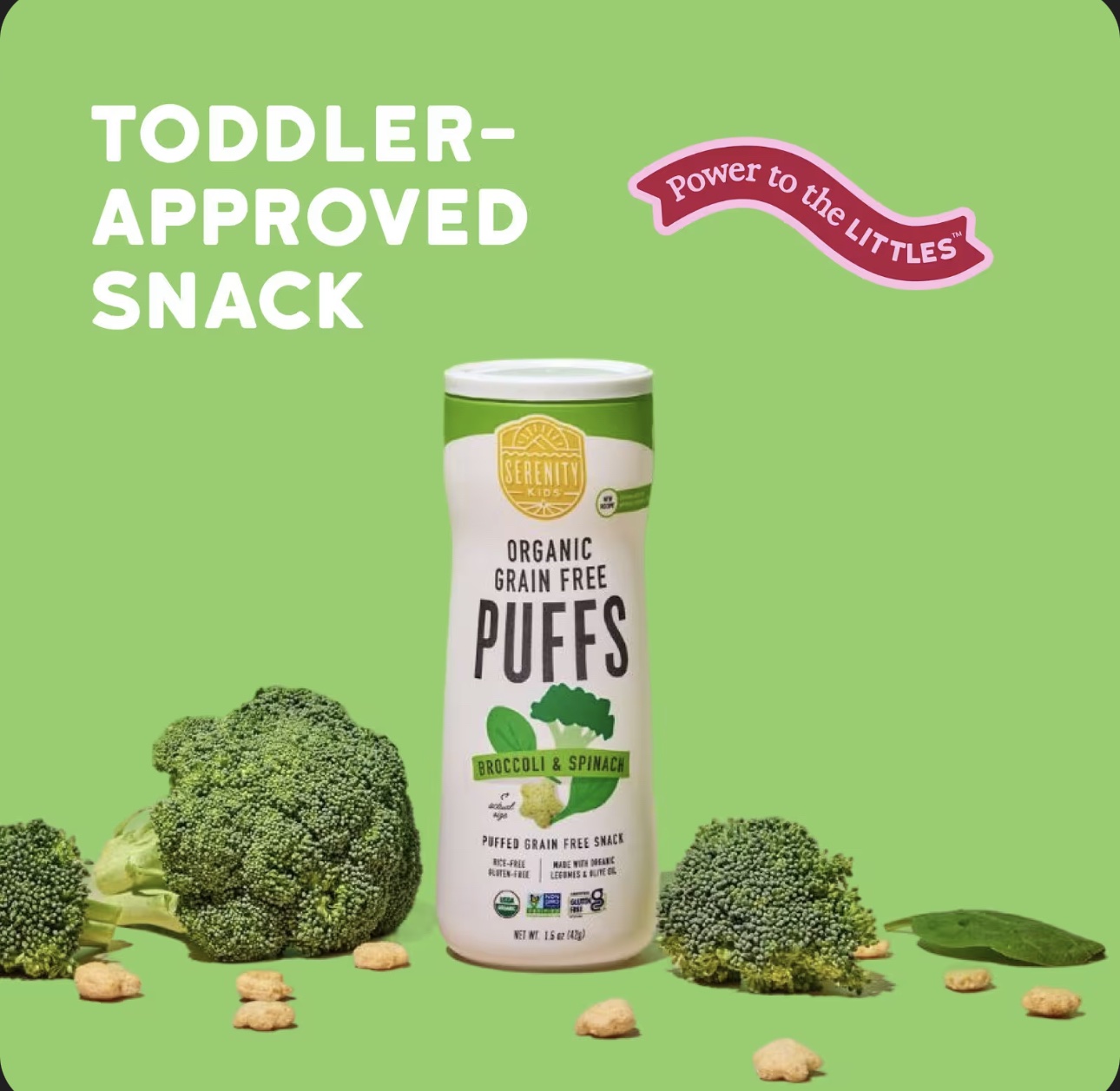سيرينتي كيدز – مقرمشات عضوية خالية من الحبوب بنكهة البروكلي و السبانخ – 42 جرام