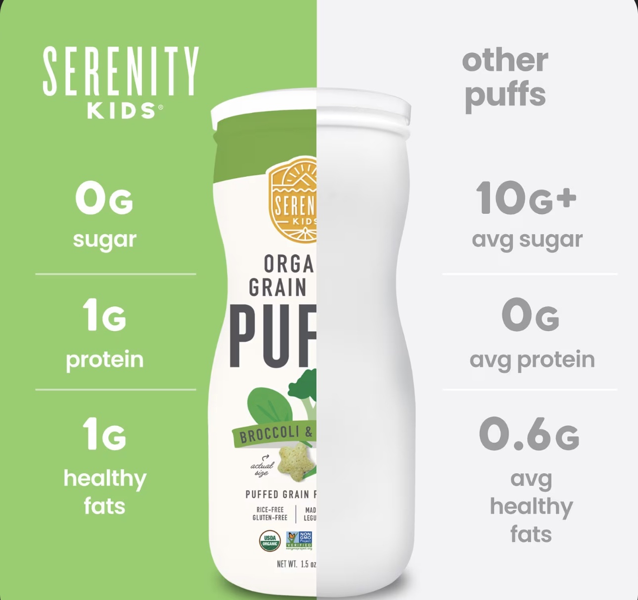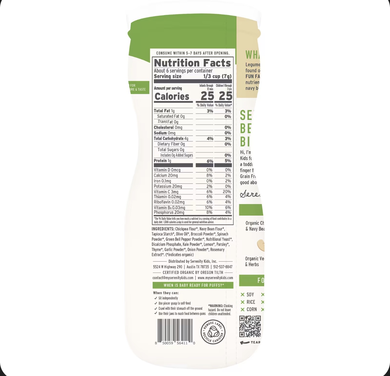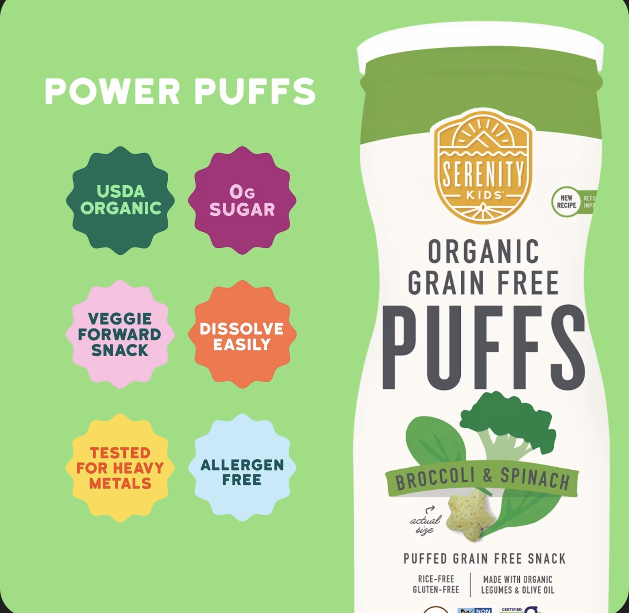 سيرينتي كيدز – مقرمشات عضوية خالية من الحبوب بنكهة البروكلي و السبانخ – 42 جرام