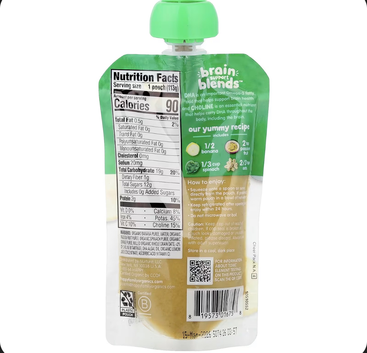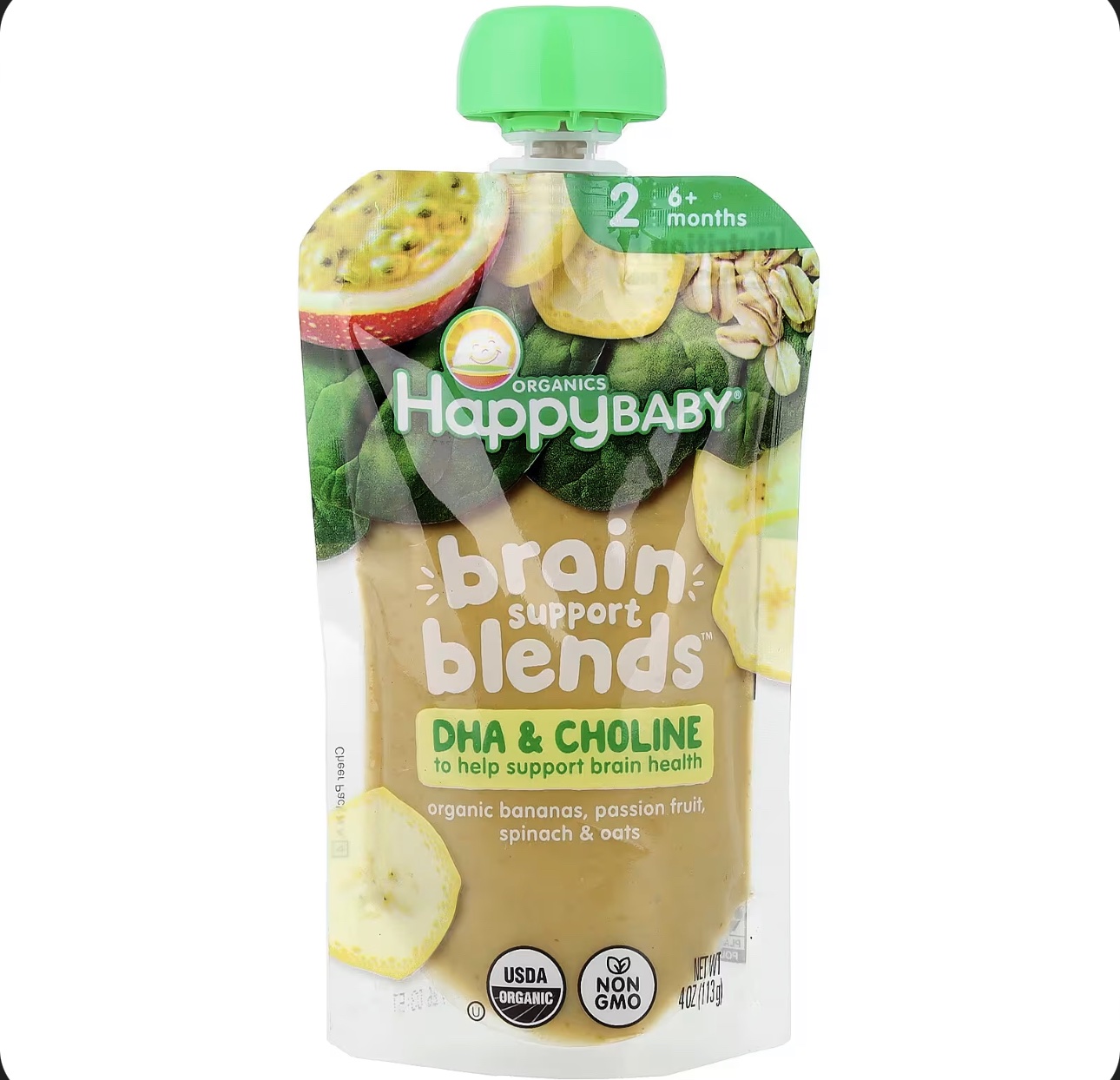 هابي بيبي – مزيج دعم الدماغ بنكهة موز عضوي , سبانخ , فاكهة الباشن و الشوفان 113 جرام