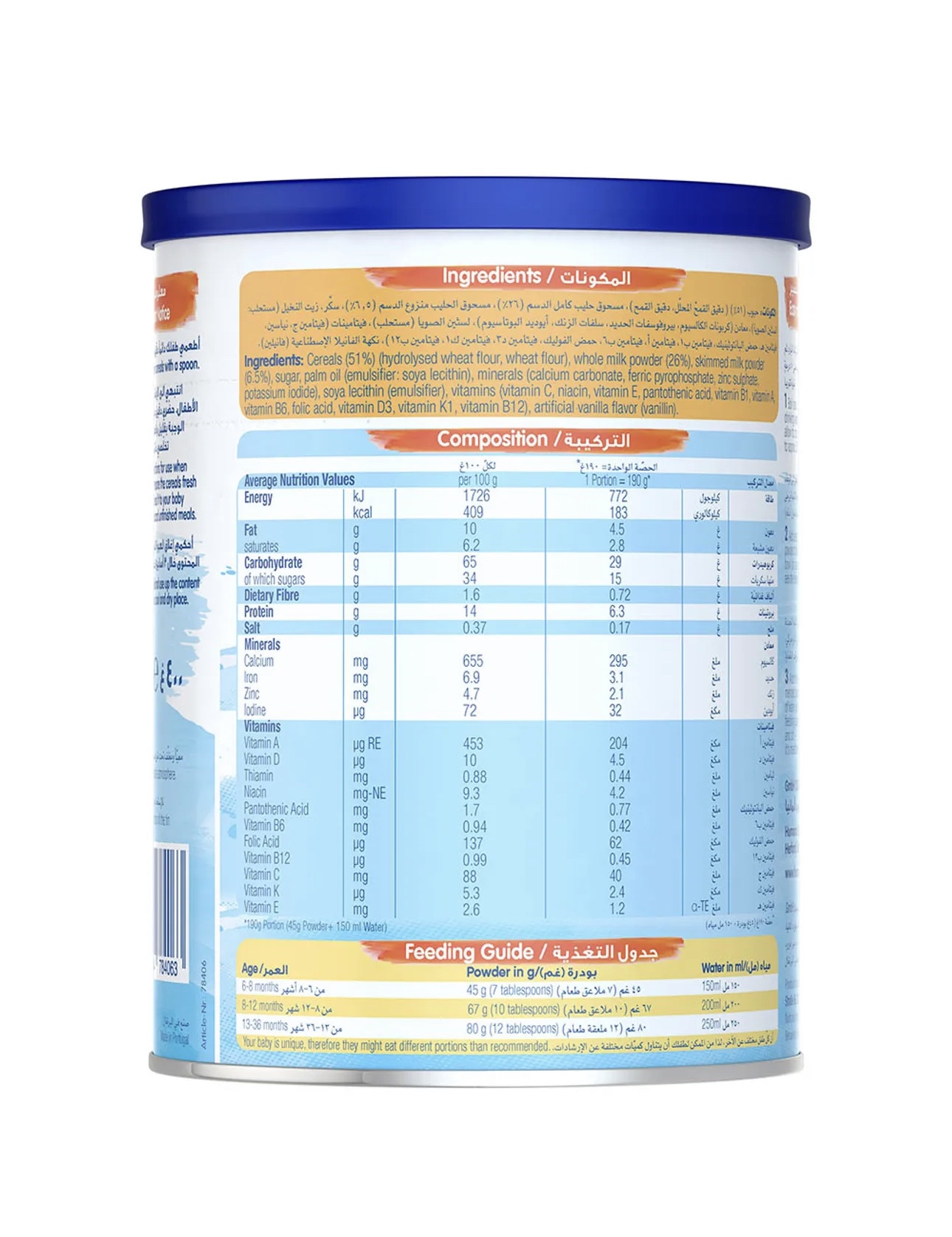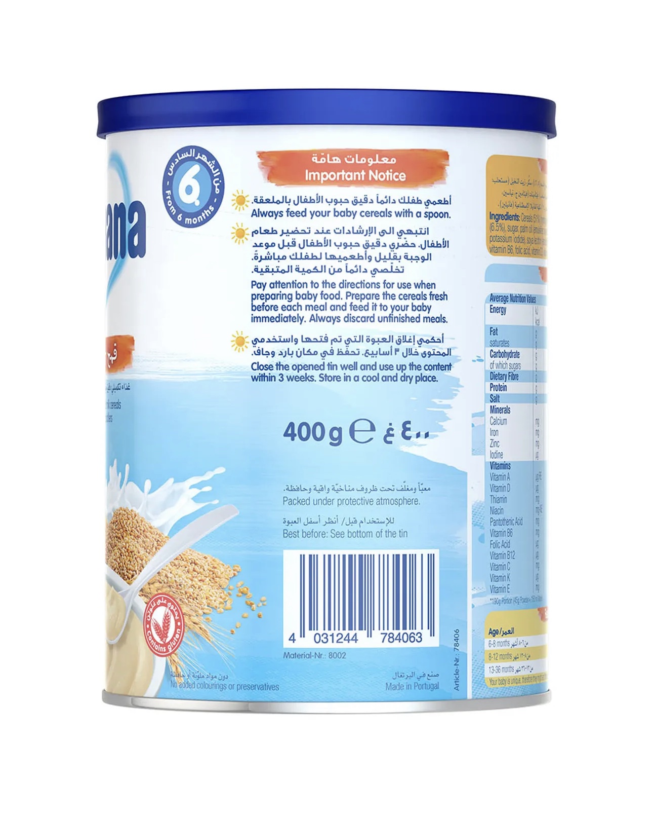 هومانا – مسحوق حبوب افطار بالحليب للرضع – قمح 400 غرام
